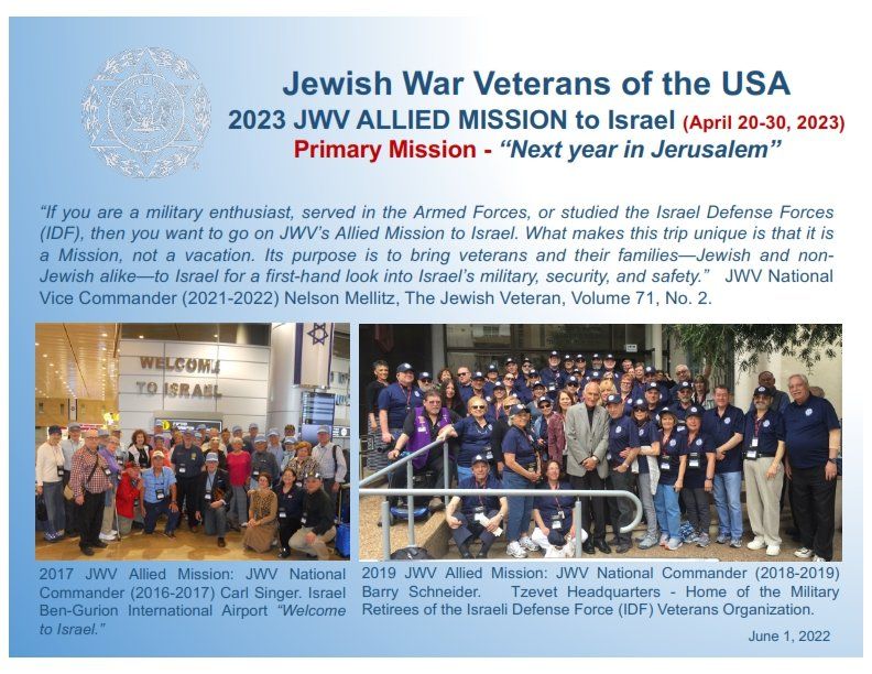 Read Commander Paley's address to members of Post 1 regarding the founding of the Hebrew Union Veterans Association at their first meeting on 15 March 1896. This was the seed of our present Jewish War Veterans of the United States of America. Click HERE for the address and pictures.