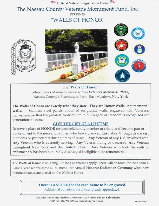 Walls of Honor at Eisenhower Park Veterans Memorial Plaza