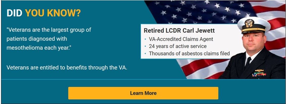 Mesothelioma Guide provides pertinent information to those veterans who may be suffering from exposure to materials and chemicals that cause mesothelioma. Click HERE or on the image to the right...