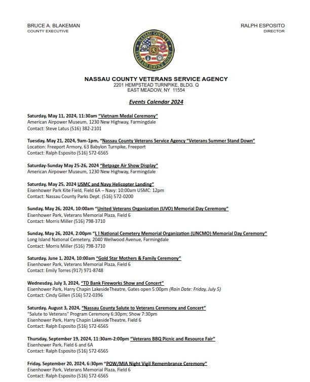 Nassau County Veterans Service Agency is ready, willing and able to serve all veterans. For complete information or to make an appointment, click HERE to visit their page.