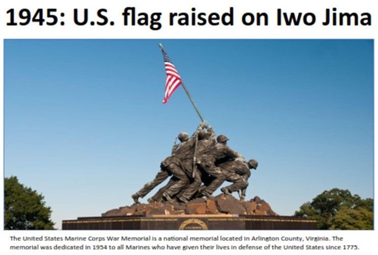 Click HERE to read the story of the most costly battle of WW-II and watch a special video tribute to USMC Rabbi Roland Gittelsohn who delivered an unforgettable eulogy for those lost during the battle for Iwo Jima.